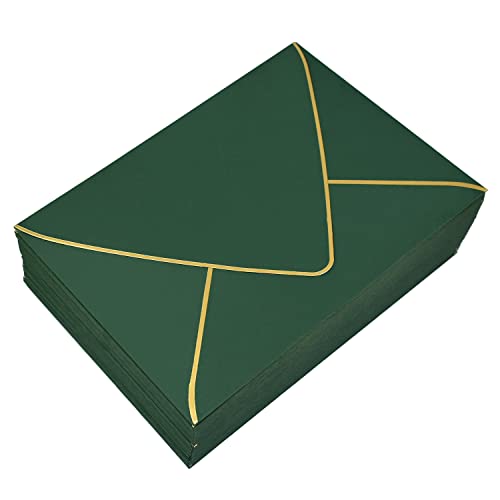 • A7 Green Envelopes 50 Pack With Gold Border Christmas Envelopes 5 x 7 - V flap, Quick Self Seal, For 5x7 Cards| Perfect for Weddings, Invitations, Photos, Graduation, Baby Shower (Green)