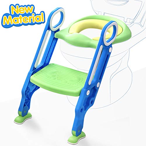 • ADOVEL Potty Training Seat with Step Stool Ladder for Toddler, Toilet Trainer for Boy & Girl, Adjustable, Anti-Slip, Foldable, Maximum Supports 165lbs, for 1-7 Yrs Kids (Green & Blue)