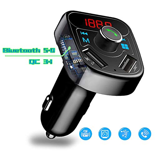 • Car Charger, YUGUANG 36W QC 3.1 Dual USB Ports X8, Bluetooth 5.0 Handsets MP3 Player Hands-Free Call Smartphone APP Wireless Music USB/TF Card Power Cut Memory Function for All Smartphones