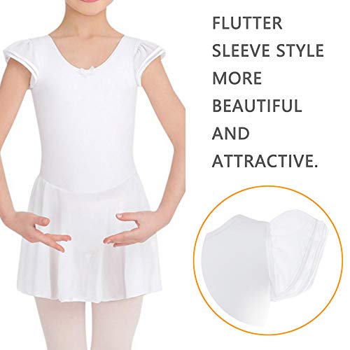 • DIPUG Ballet Leotards for Girls Ballet Leotard With Skirt Toddler Dance Leotards Flutter Sleeve and Criss-Cross Back White Size 6-8