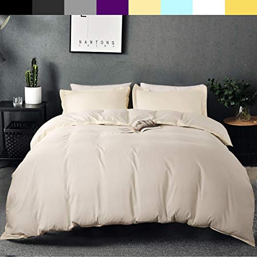 BALICHUN Duvet Cover Set Queen Size Premium with Zipper Closure Hotel Quality Hypoallergenic Wrinkle and Fade Resistant Ultra Soft -3 Piece-1 Microfiber Duvet Cover Matching 2 Pillow Shams (Ivory, Queen)