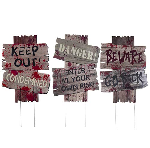 • Scary Halloween Yard Signs for Scary Outdoor Decoration - Beware - Do Not Enter Creepy Sidewalk Warning Signs with Metal Stakes (3 Piece Set, 12 x 9 Inches)