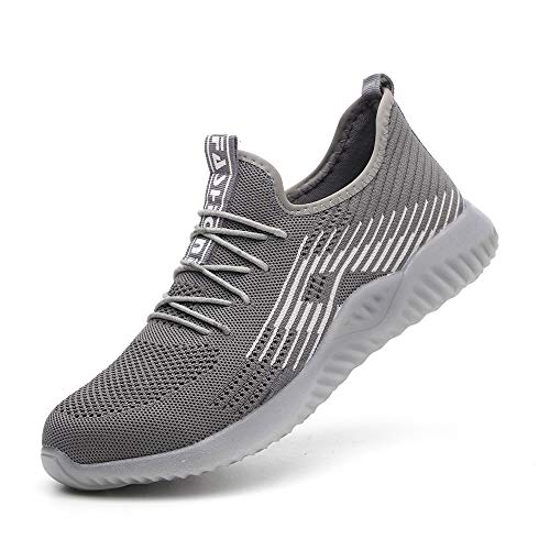 MandyQ Steel Toe Shoes Men, Work Safety Shoes Lightweight Comfortable Industrial & Construction Sneakers Breathable Mesh Slip Resistant Composite Toe Shoes 115/Grey US10.5/EU45, mens
