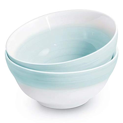 • 77L Porcelain Salad Bowl, [Set of 2, 22 FL OZ (650 ML)] Ceramic Salad/Cereal Bowl, Hand-painted Bowls Serving for Cereal, Salad, Snack, Oatmeal and More (6.2 Inches Diameter, Green)
