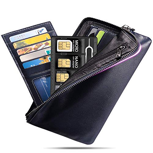 • 1 Pack SIM Card Holders with Tray Opener Pins, Card Storage Tool Set for Standard Micro Nano Micro-SD Memory Cards, with 3 Card Adapters and 1 Eject Pins - Black