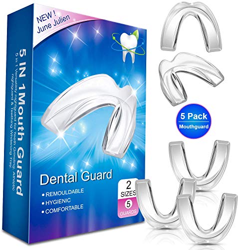 • June Julien Mouth guard for Grinding Teeth, 2 Sizes, 5 Pieces Mouthguard, Customizable and Trimmable Medical Grade Mouth guard for Grinding Teeth Clenching Bruxism, Sport Athletic.