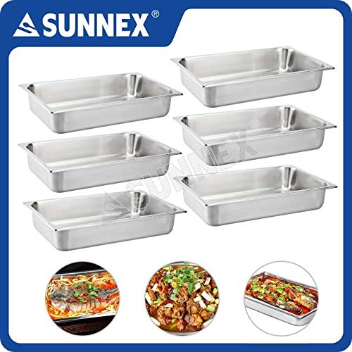 SUNNEX Quality since 1929 SUNNEX (Set of 6) 4-inch Deep Full Size (1/1) 14.3 US QT (13.5 LTR) Stainless Steel Anti-Jam Steam Table Pan Gastronorm (GN) Food Pan,Food Container Gauge 22 (Thick Sheet Metal) 20.87" (L) x12.8" (W)