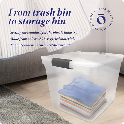 • HOMZ 4-Pack Latching Lid, Large Clear Plastic Storage Bins with Lids, 31 Quart, Gray Latch - Stackable Container Boxes for Home, Bathroom, and Office Organization