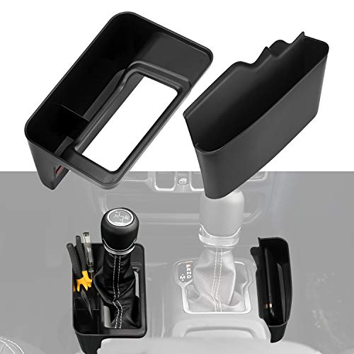 • isinlive 2 Pack Gear Shift Console Side Storage Box for Driver and Passenger, Auto Transmission Side Organizer Tray for 2018-2020 Jeep Wrangler JL JLU & 2020 Jeep Gladiator JT, Black