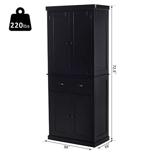 HOMCOM 72" Traditional Freestanding Kitchen Cupboard Pantry Cabinet with Elegant Colonial Design, Antique Hardware, Black