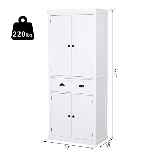 • HOMCOM 72" Traditional Freestanding Kitchen Cupboard Pantry Cabinet with Elegant Colonial Design, Antique Hardware White