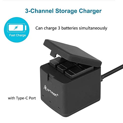 • Artman Battery 1500mAh for GoPro Hero 8/7/6/5 Black and 3-Channel LED USB Charger Fully Compatible with GoPro Hero 8 Battery and Charger (3-Pack)