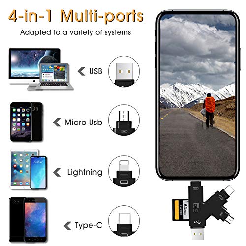 Palotix Trail Camera Viewer Memory SD Card Reader for iPhone Android IPad & Mac, 4 in 1 SD Card Reader Sd Card Viewer to View Photos Or Videos from Deer Hunting Camera On Smartphone, Black