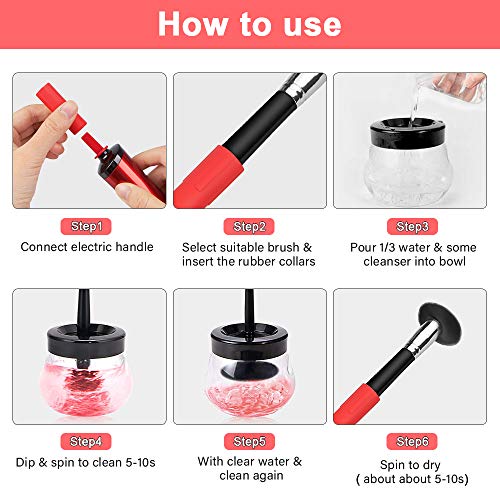 • Mixigoo Makeup Brush Cleaner Dryer - Electric Spinner Cleaner Super Fast with 8 Rubber Collars Tools Suitable for Most Makeup Brushes (White) (Red)