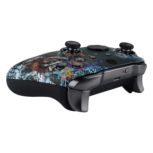 • eXtremeRate Tiger Skull Patterned Faceplate Cover, Soft Touch Front Housing Shell Case Replacement Kit for Xbox One Elite Series 2, Xbox Elite 2 Core Controller Model 1797 - Accent Rings Included