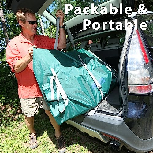 Sea Eagle TC16 Inflatable 16’ High Pressure Drop Stitch Travel Canoe-Wood Web Seats, Pump, Bag and Optional Paddles for Lakes, Rivers & Bays-Easy to Transport, Pack & Stow (TC16 Startup Package), Green and Gray, 16'