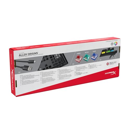 • HyperX Alloy Origins - Mechanical Gaming Keyboard, Software-Controlled Light & Macro Customization, Compact Form Factor, RGB LED Backlit - Tactile HyperX Aqua Switch,Black Product description: