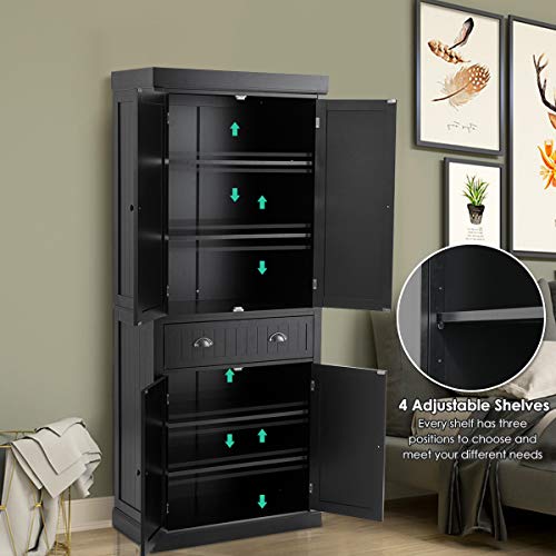 • Tangkula 72‘’H Freestanding Kitchen Pantry Cupboard Cabinet, Traditional Elegant Design, w/Adjustable Shelves, 2-Door Floor Utility Storage Cabinet for Living Room Kitchen Hallway (Black)