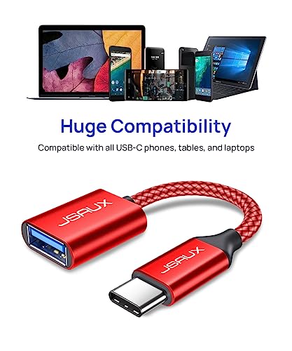 • JSAUX USB C to USB Adapter [2 Pack], USB Type C Male to USB 3.0 Female OTG Cable Thunderbolt3 to USB Adapter Compatible with MacBook Pro/Air 2019 2018 2017, Galaxy S23 S23+ Ultra Note 10 S9 S8-Red
