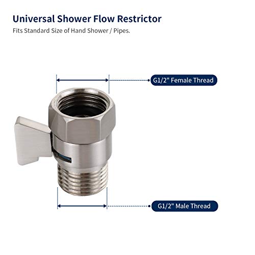 • Tenfe Water Flow Control Shut Off Valve, Brass Adjustable Water Pressure Regulator for Hand shower & Bidet Sprayer Turn off Valve, Brushed Nickel Showerhead G1/2 Standard Connection