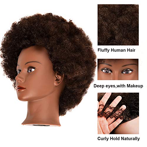 • African American Mannequin Head with 100% Human Hair Kinky Curly Hair Hairdresser Practice Styling Training Head Cosmetology Manikin Doll Head for Dye Cutting Braiding with Free Clamp