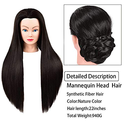 N2 Hair Stying Training Mannequin Head Brown Color with Stand Hairdressers Practice Cosmetology Dolls Head Training Model Salon Hair Head Fiber Hair-dressing and Makeup Practice Head Female, jet black