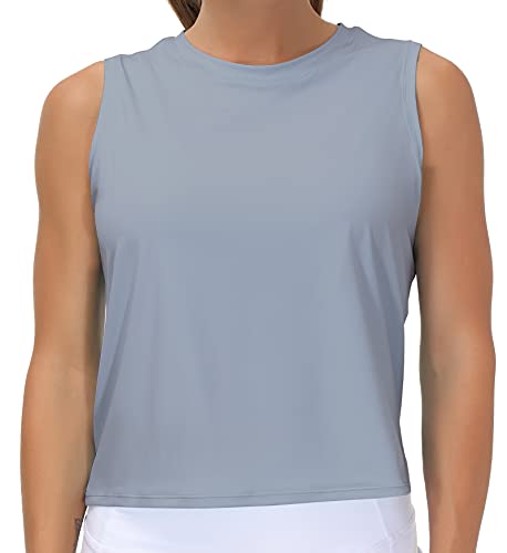THE GYM PEOPLE Ice Silk Workout Tops for Women Quick Dry Muscle Gym Running Shirts Sleeveless Flowy Yoga Tank Tops (Blue, Medium)