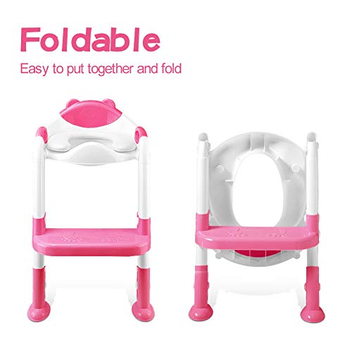 augtarlion Potty Training Seat with Step Stool Ladder, Potty Training Toilet Seat for Boys Girls Kids Toddlers, Soft Cushion, Safety Handle, Anti-slip Step Pads, Baby Toddler Potty Seat for Toilet, Baby Pink, 15.9x13x5.6 Inch (Pack of 1)