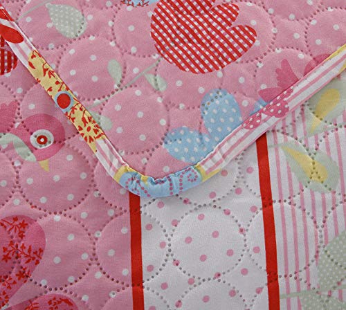 • 3-Piece Girls Floral Quilt Set Full or Queen with Shams, Flowers Birds Dot Stripe, Soft Breathable Quilted Bedspread Coverlet Bedding Set for All Seasons (Pink Flower, Full/Queen)