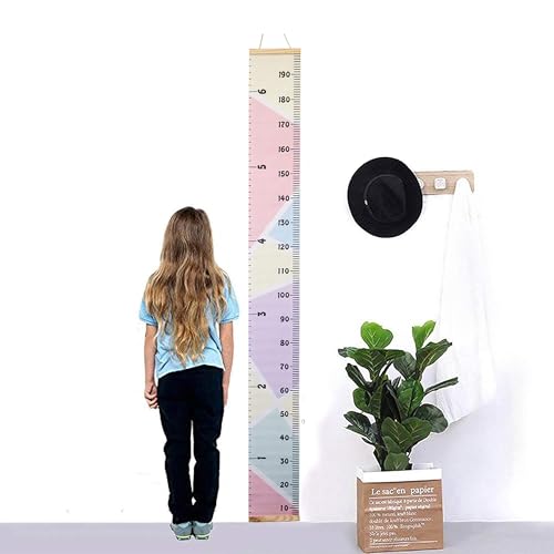 • MinoMia Kids Growth Chart, Wood Frame Fabric Canvas Height Measurement Ruler from Baby to Adult for Child's Room Decoration 7.9 x 79in (7.9 x 79in, Colorful)