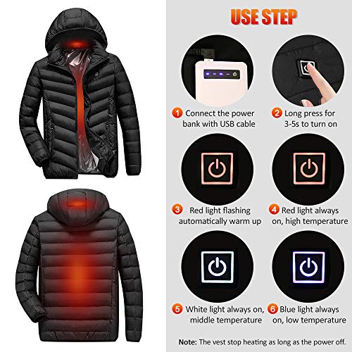 • Lixada Heating Jacket USB Charging USB Charging Heated Jacket Lightweight Electric Hooded Coat with Removable Hood for Men&Women(Power Bank NOT Included)