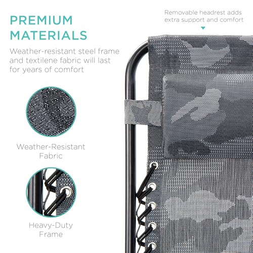 Best Choice Products Set of 2 Adjustable Steel Mesh Zero Gravity Lounge Chair Recliners w/Pillows and Cup Holder Trays - Camoflage, Camouflage