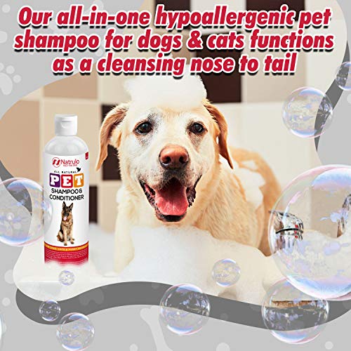 Natrulo All Natural Pet Shampoo & Conditioner for Dogs, Cats, Furry Animals 12oz – 2-in-1 Dry Itchy Skin Relief Anti Itch Body Wash Soap with Organic Colloidal Oatmeal, Aloe, Moisturizing Shea Butter