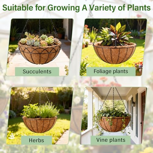 • Halatool 4PCS 12Inch Round Coco Liners Hanging Basket 100% Natural Replacement Coconut Liner for Planters Garden Flower Pot Vegetables Herbs