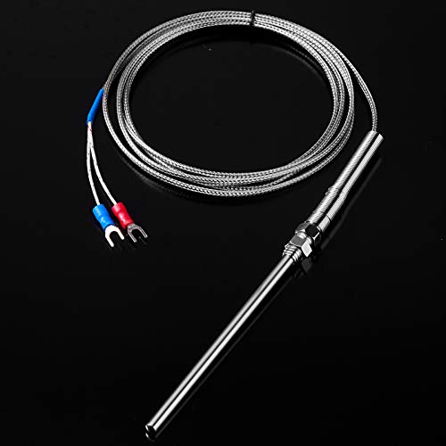 • Weewooday K-Type Thermocouple Temperature Sensors, Shielded Wire Length 2 m/ 6.6 Ft, Stainless Steel Metal Probe Length 100 mm, Measuring Temperature Range 0-400°C (2)