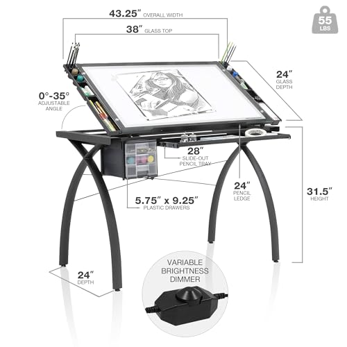 • Artograph Futura Light Tracing Table for Artists with Storage and Adjustable, Dimmable Glass Work Top