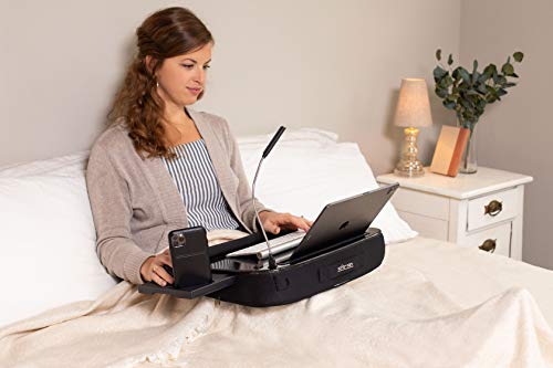 • Deluxe Lap Desk for Laptop and Writing - Black - Laptop Stand Accessories - Home Office Tray - Work from Home - Car Sofa Chair Couch Portable Desk - Pillow - Reading Light - Tablet Slot (Deluxe)