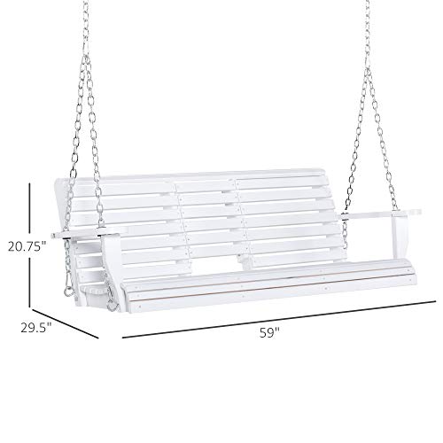 • Outsunny 3-Seater Wooden Porch Swing Bench with Folding Coffee Table, Durable PU Coating, Chains Included, White