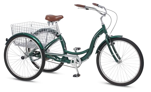 Schwinn Meridian Adult Tricycle Bike, Mens and Womens Three Wheel Beach Cruiser, 26-Inch Wheels, Low Step-Through Frame, Wide Seat, Rear Folding Basket, Single-Speed, Green, Dark Green, Single-Speed/26-Inch Wheels Item Sku: