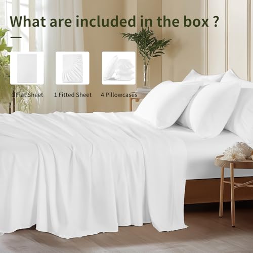 • Shilucheng 6 Piece Queen Sheet Sets, Cooling Sheets, Blend Rayon Derived from Bamboo, Deep Pocket Up to 16", Breathable & Soft Bed Sheets, Hotel Silky Bedding Set, White