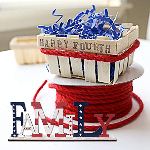 • 'Family' Independence Day Home Table Decoration, Patriotic Wooden Decorative Plaque 4th of July American Flag Letter Sign Blessed Table Centerpiece Dining Room Decorations