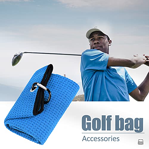 Mile High Life Tri-fold Golf Towel | 16" X 24" | Premium Microfiber Fabric | Waffle Pattern | with Heavy Duty Carabiner Clip | for Men and Women (2 Pack Blue)