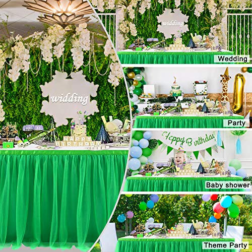 Suppromo 14ft Green Table Skirt Tulle Tutu Table Clothes for Birthday Boy Girl Baby Shower Gender Neutral Graduation, Hawaiian Jungle Luau Themed Party, Animal Safari Theme Party Decorations, 168" x 30" (14FT)