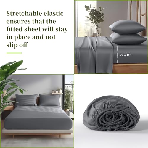 • Shilucheng 100% Viscose Derived from Bamboo_ Sheets King Size 6pcs - Ultra Cooling & Silky Soft Bed Sheets, 16" Deep Pocket, Perfect for Hot Sleepers, Hotel Bedding Sheets (Dark Grey)