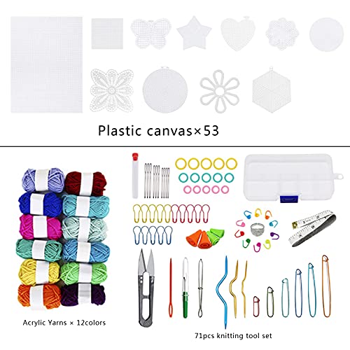 Aulufft 53 Pieces Mesh Plastic Canvas Kit Including 11 Shapes Clear Plastic Sheets and Embroidery Tools for Embroidery, Knit, Yarn Crafting, 136 PCS, Style 2