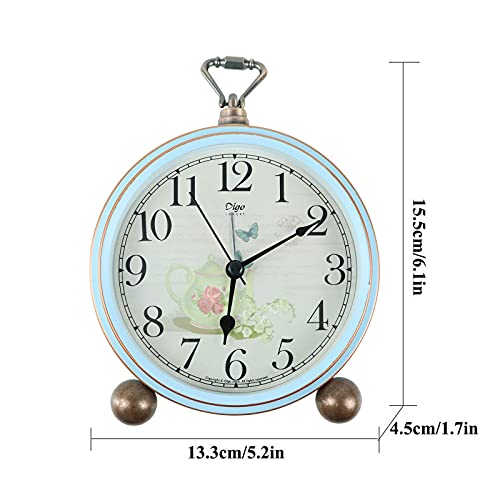 Maxspace 5.2in Desk Clock, Retro Silent Analog Clock Non-Ticking & Battery Operated with Quartz Movement,Clock Decor for Bedroom Living Room, Teapot