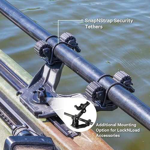 • YakAttack DoubleHeader with Dual RotoGrip Paddle Holders | Offset Kayak Paddle Holder | Multi-Accessory Track Mount | Includes SnapNStrap Tethers | Compatible with GearTrac & Most Kayak Tracks