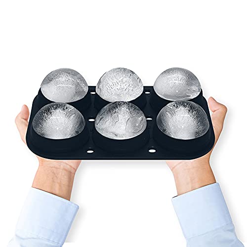 • Deiss PRO Whiskey Ice Ball Maker Mold & Plastic Funnel — 6 Large 2.5 Inch Ice Spheres in Flexible Silicone Tray — Big Ice Cube Tray With Lid for Bourbon, Scotch and Cocktails — Easy Release