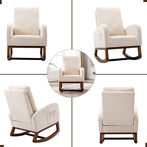 Antetek Modern Accent Rocking Chair, Upholstered Nursery Glider Rocker for Baby and Kids, Comfy Armchair with Side Pocket, Living Room Lounge Arm Chair with High Backrest (Beige), 37D x 27.1W x 39.7H Inch