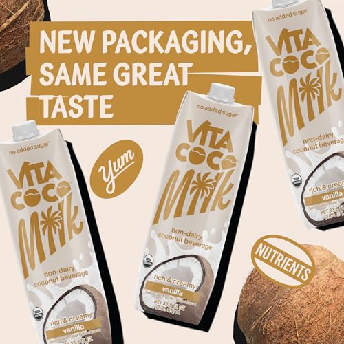 • Vita Coco Vanilla Organic Coconut Milk, Plant Based, Dairy Free Milk Alternative - Gluten Free, Soy Free, and Unsweetened - Perfect Add to Cereal, Smoothies, Desserts -33.8 Fl Oz (Pack of 6)